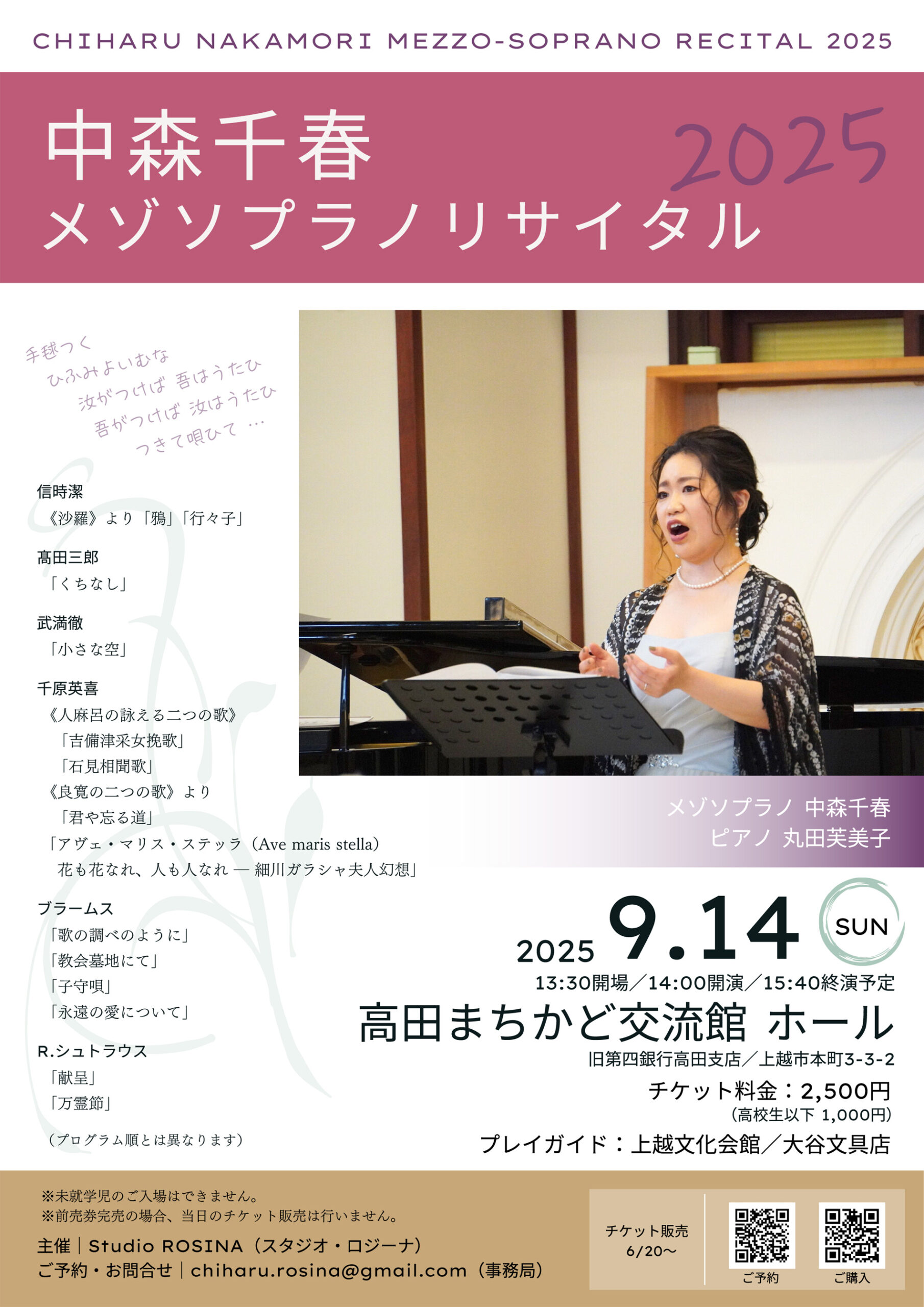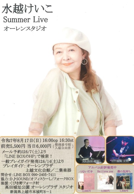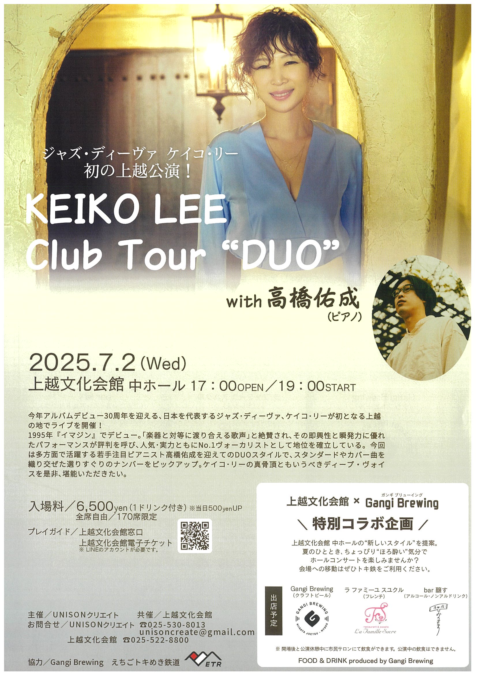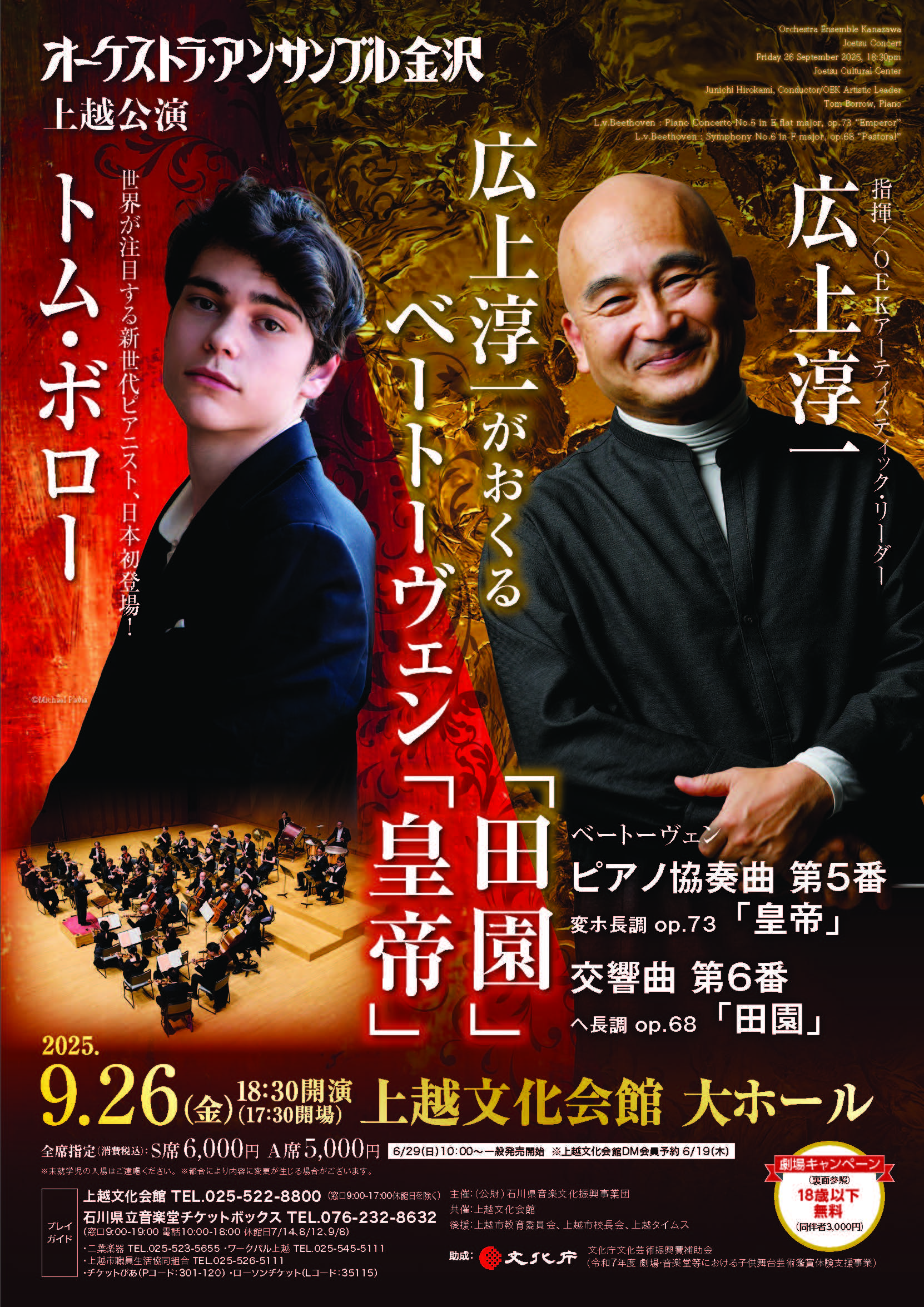 日時 2025/11/22 (土) 開場17:00 開演18:00 会場 上越文化会館 チケット代金 全席指定席 ¥8,800(税込) 車椅子席 ¥8,800(税込) 年齢制限 未就学児入場不可 先行予約情報