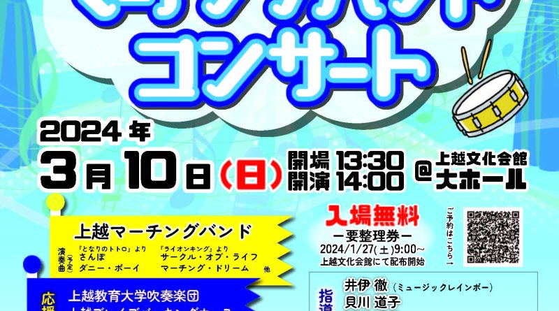 Read more日時:2024年2月11日(日) 開場13:30 開演14:00(終演予定16:00) 会場:上越文化会館 大ホール 料金:入場無料(整理券・招待券はありません) 主催:新潟県上越音楽教育研究会 共催:上越市教育委員会