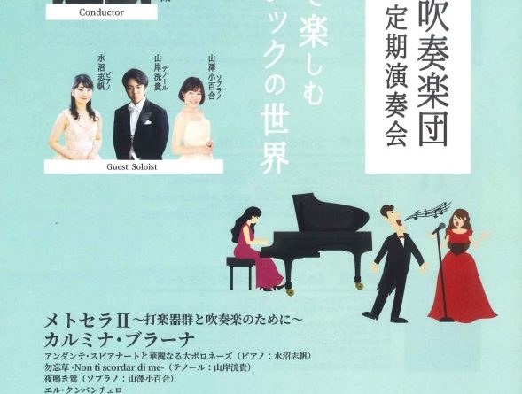 Read more吹奏楽で楽しむクラシックの世界 開場:午後1時30分 開演:午後2時 会場:高田城址公園オーレンプラザ ホール 曲目:メトセラ打楽器群と吹奏楽のために、カルミナ・ブラーナほか 指揮:ストヤーノフ慕井湖さん ゲスト:水沼志