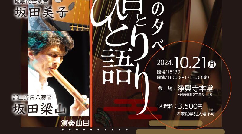 Read more2024年 10月 21日(月) 【時間】 開場 15:30 開演 16:00 ~ 17:30(予定) 【会場】 浄興寺 新潟県上越市寺町2丁目6-45 https://www.johkohji.com/access/