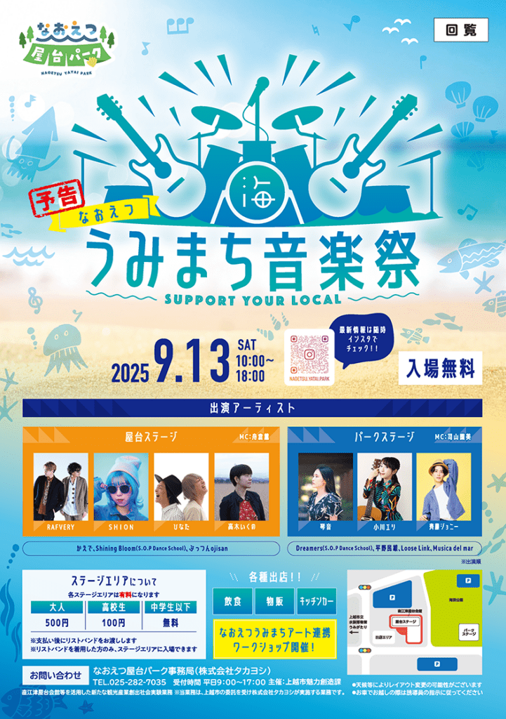 一歩足を踏み入れた瞬間から胸を躍らせ、心も身体も熱くなるエネルギーと希望が溢れている音楽フェス。・・・2025年秋!日本の音楽シーン、ライブシーンの第一線で活躍するアーティストが上越に集結!フェスの幸福感・満腹感を、この